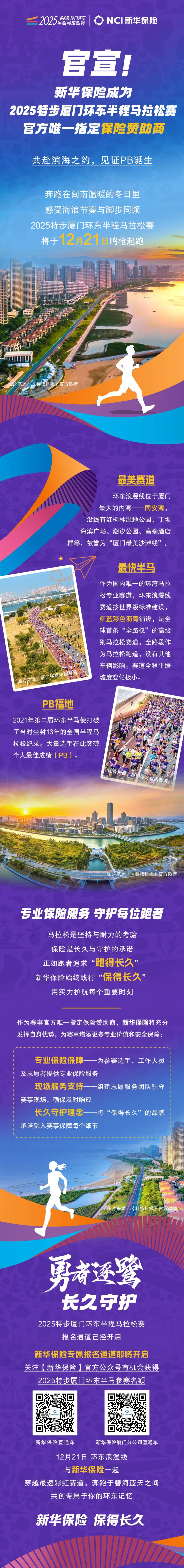 官宣!新华保险成为2025特步厦门环东半程马拉松赛官方唯一指定保险赞助商