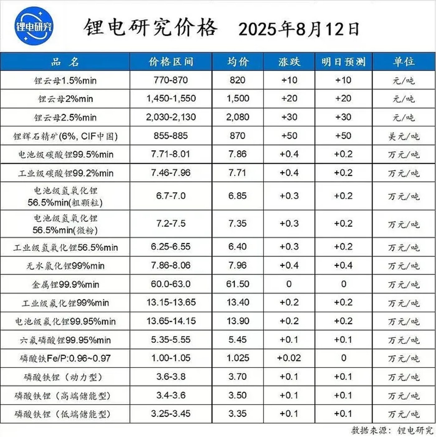 图/新能源动力电池相关材料价格来源/锂电研究