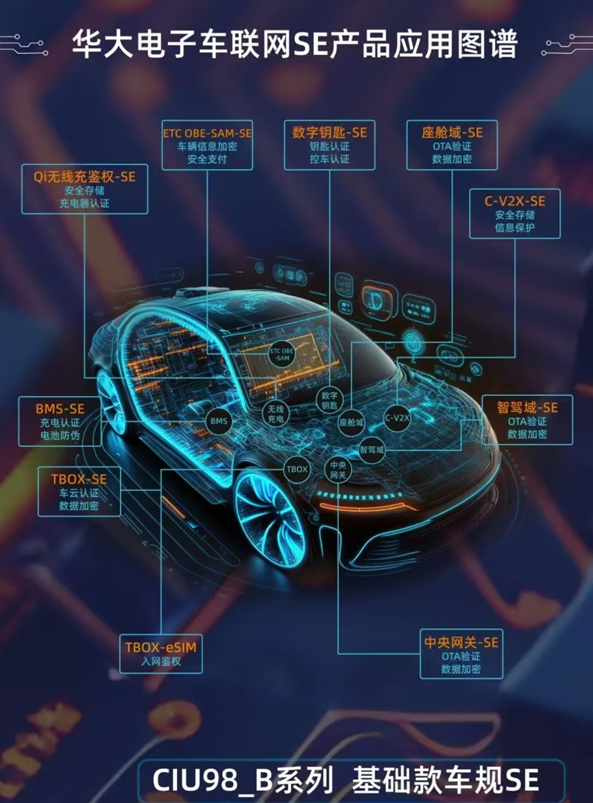 上图是国内一直从事智能卡与安全芯片(SE)设计和推广应用的北京中电华大电子设计有限公司公布的车用安全芯片在现代化汽车中的应用场景,可见随着汽车智能化、网联化和电气化程度的提升,为了确保信息安全措施覆盖所有的接口和数据通道,汽车主机厂或者一级供应商(Tier-1)就需要在数据流入车内的各个关口,用符合车规等级质量要求的安全芯片来进行把守。华大电子与中汽研等国内汽车技术研究机构以及比亚迪等国内领先主机厂牵头制定了《汽车安全芯片应用领域白皮书》,该白皮书是国内首个系统性梳理汽车安全芯片技术路线、应用场景与验证体系的权威指南。
