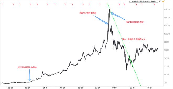 遭到伯克希尔清仓后,中石油的股价并没有马上掉头直下,而是继续飙升,在同年11月初创下超4500亿美元的历史最高估值。