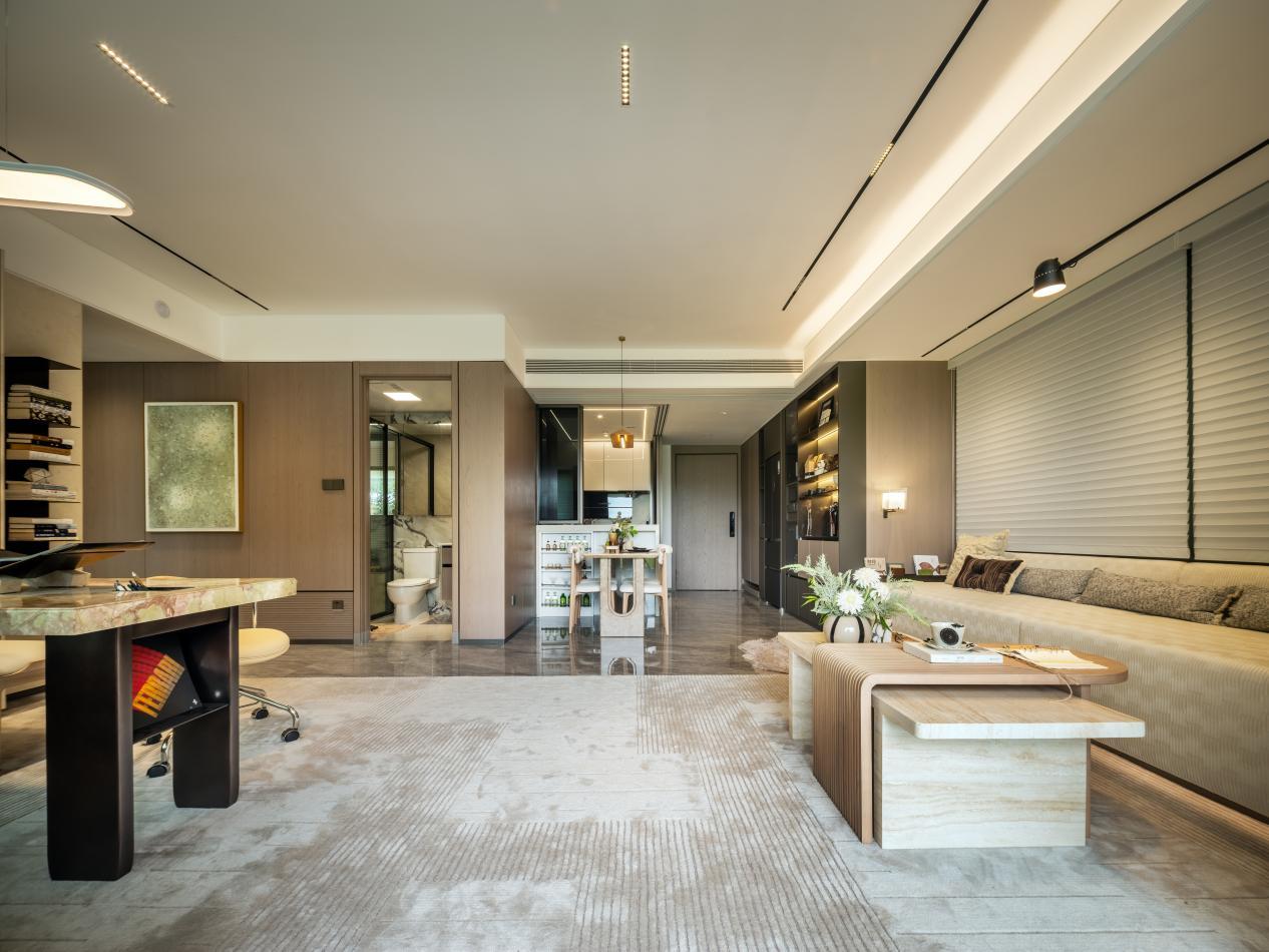 主卧配备约8.9米的L型环幕飘窗,推窗即景,四季流转入室。书房与客厅、主卧与次卧之间没有固定的边界,可以根据需要转化为横厅、双主卧,甚至三代同堂的格局。