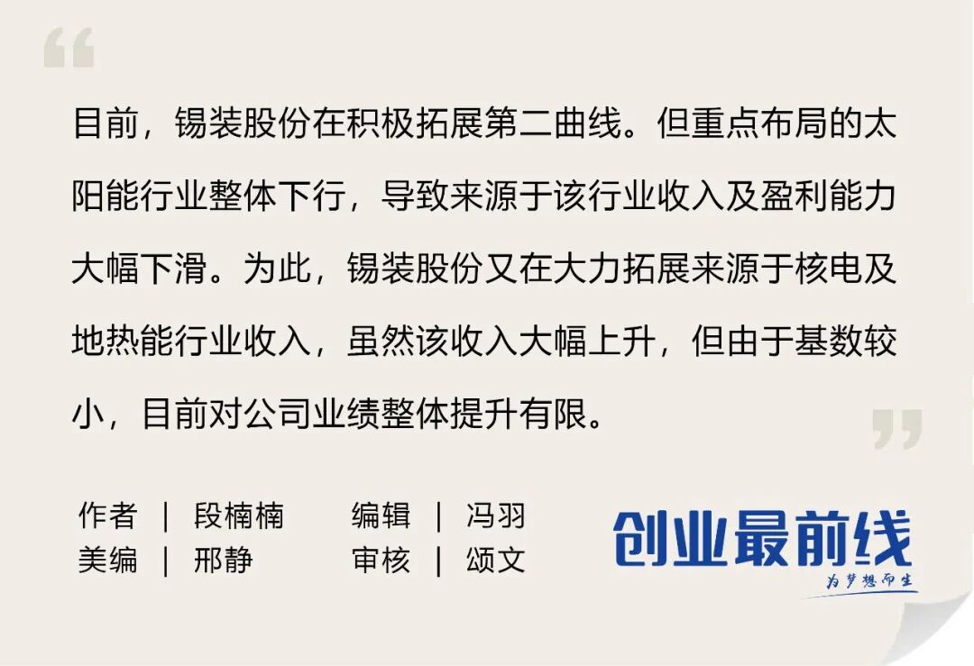 为此,锡装股份又在拓展来源于核电及地热能行业收入,虽然该收入大幅上升,但由于基数较小,目前对公司业绩整体提升有限。在国家支持核电发展的背景下,锡装股份能否凭此打开第二增长曲线,「创业最前线」将持续保持关注。