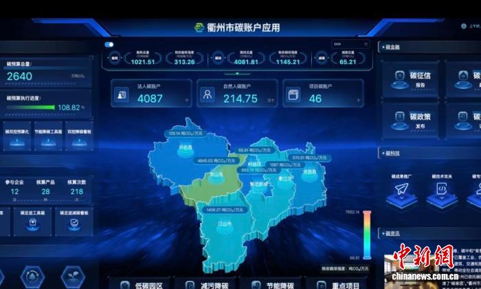 今年8月,衢州市碳账户应用总览页面。衢州市发改委供图