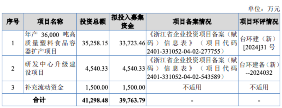 不过另一方面,此次IPO募资,新天力计划募资3.98亿元,其中占比85%的资金3.37亿元,仍计划砸向新增3.6万吨高质量塑料食品容器扩产项目。其次为研发中心升级项目4540万元,补充流动资金1500万元。