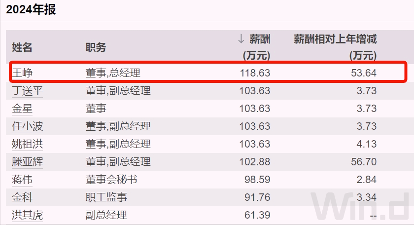 根据年报披露,2024年王峥的税前薪酬约119万元,在高管中最高;多位高管薪酬超过百万元。