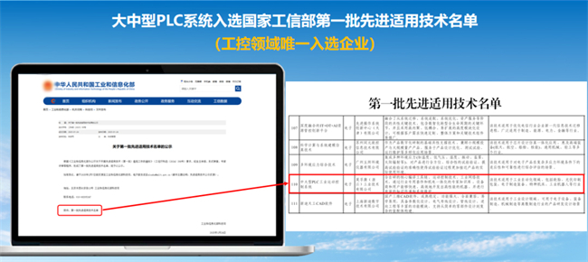 尤为值得一提的是,该解决方案的核心——英孚康中大型PLC凭借其卓越的技术先进性和行业领先性,已成功入选国家工业和信息化部发布的《第一批先进适用技术名单》,并且是该细分领域内唯一入选的产品。这一国家级权威认可,标志着英孚康的核心技术达到了国内顶尖水平,完全满足国家对于推动工业转型升级的高标准要求。