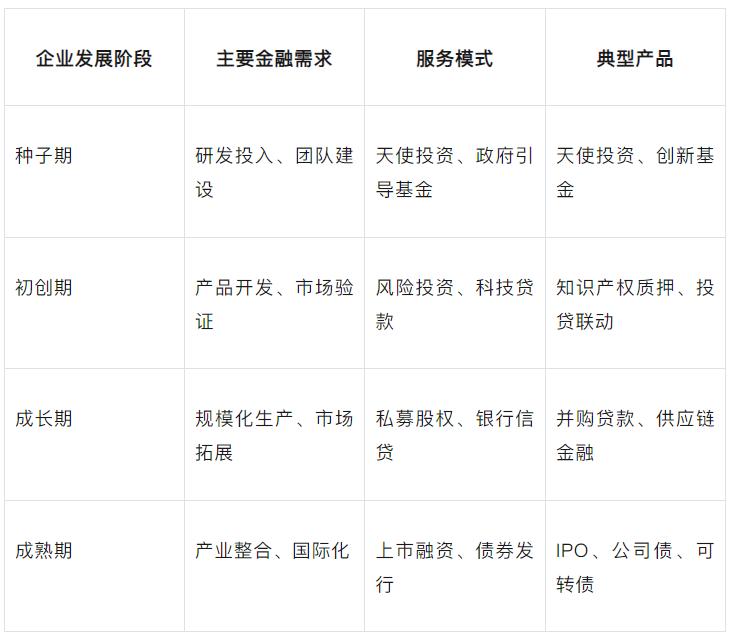 分阶段、差异化的服务模式。在企业发展的不同阶段,金融服务呈现出明显的差异化特征: