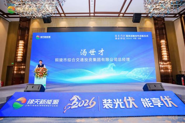 本报讯 1月10日“骏马启福·能享伏”2026锦天工商业光伏开门红发布会隆重举行,这场汇聚政企精英与行业翘楚的盛会,既是安徽锦天新能源与铜陵市综合交通投资集团国资民企携手的战略启航,更是工商业光伏产业赋能低碳未来的聚力之举,为2026年光伏行业发展奏响开门红序曲。