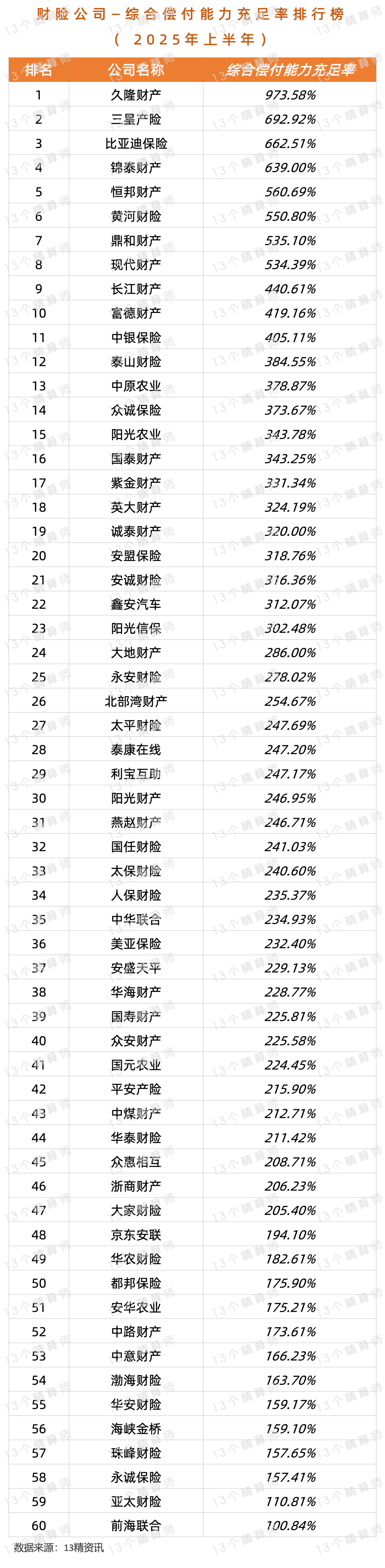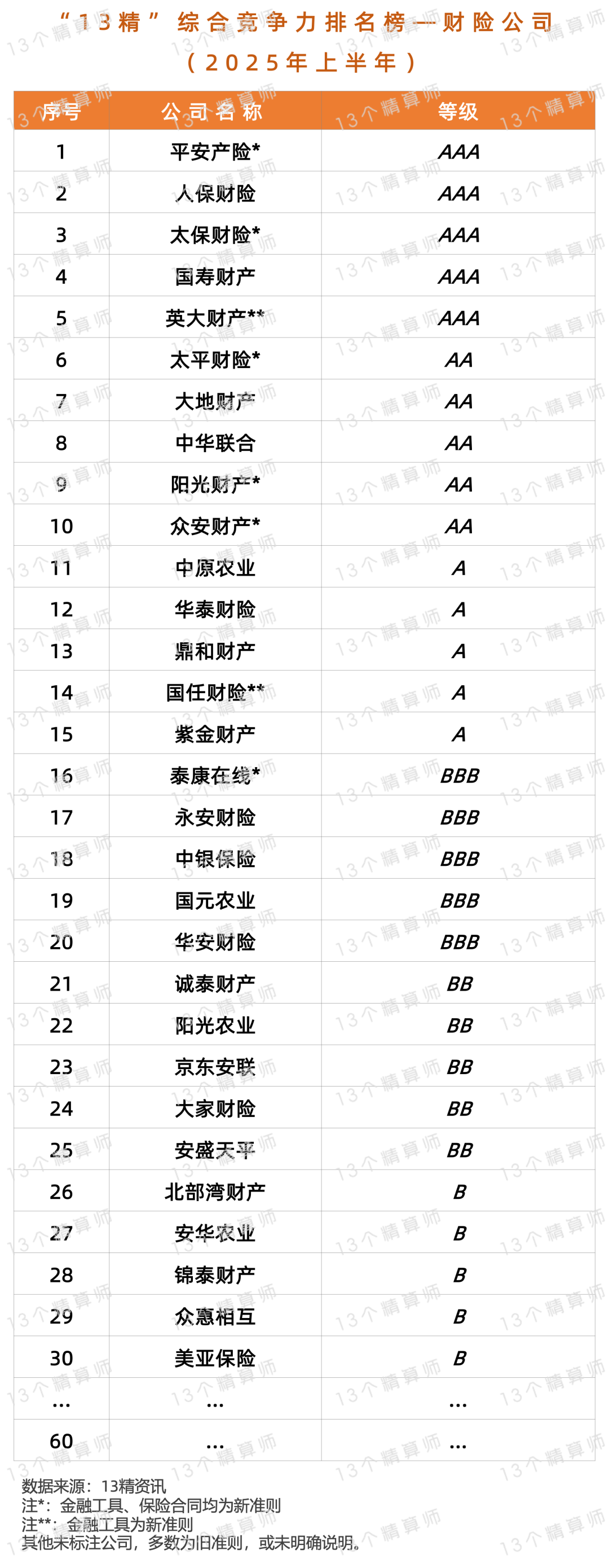 2025上半年财险公司“13精”综合竞争力排名榜:平安、人保、太保均为AAA!(2026年第一期 总第六十六期)