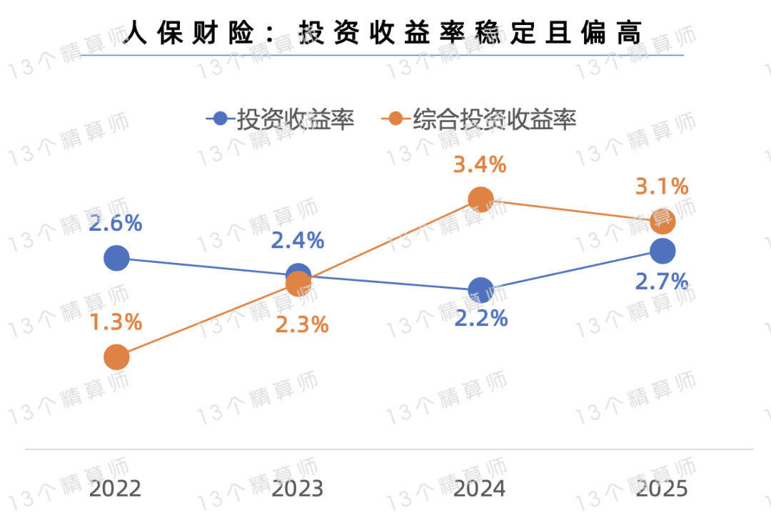 从上图可见,2025年上半年,人保财险的投资收益率为2.7%,较上年同期上升0.5个百分点。