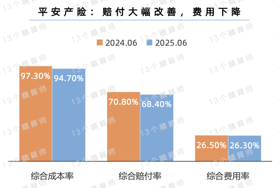 在效益端,2025年上半年,平安的综合成本率继续下降,从上年同期的97.3%降至94.7%,下降2.6个百分点。