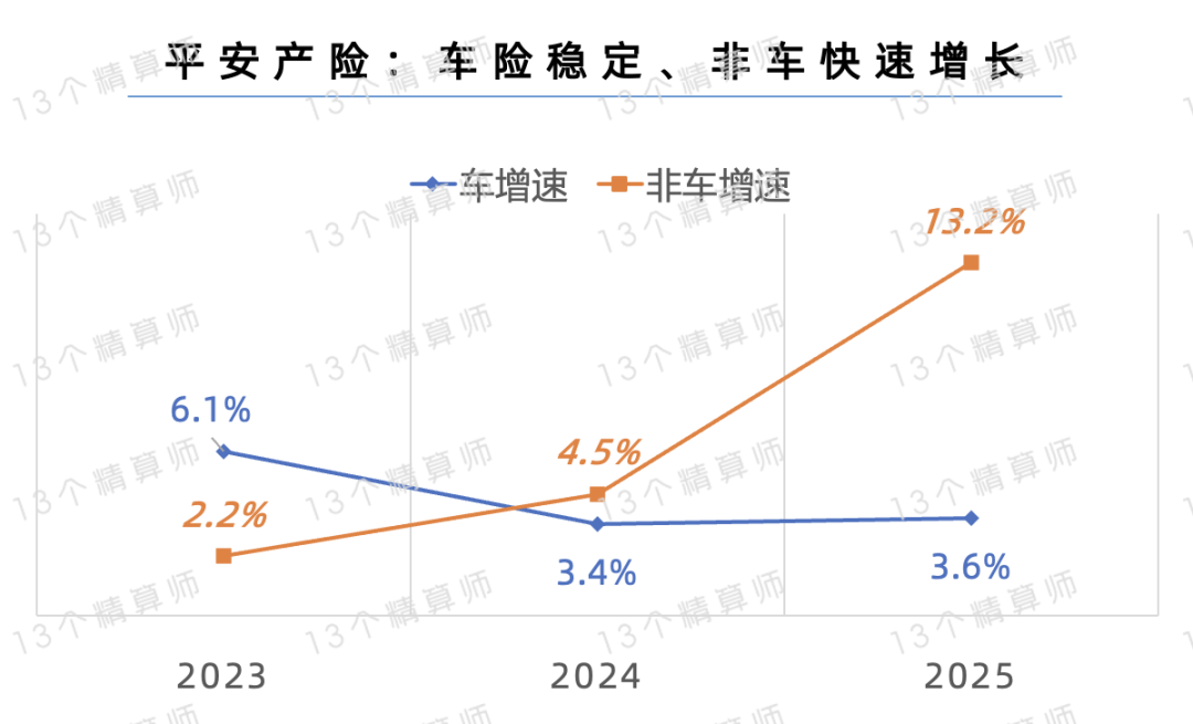 非车险方面,在业务调整后也实现快速发展,从上图可见,平安产险的非车险保费增速,在上半年实现双位数增长。
