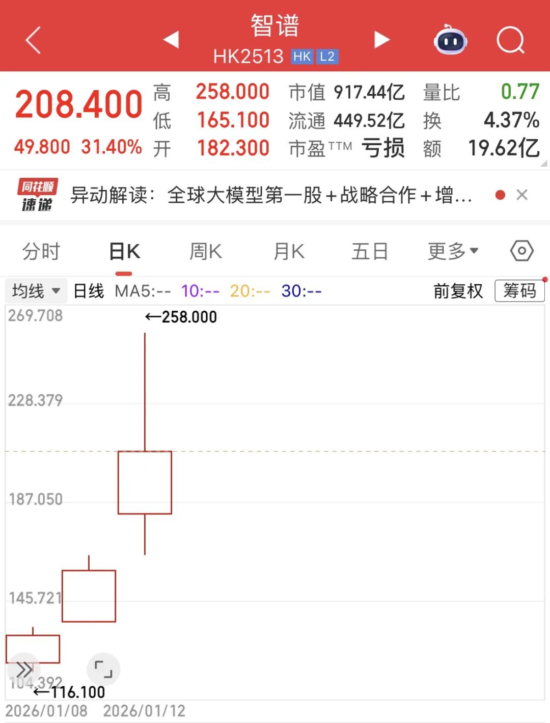 紧接着,1月8日,同为国产GPU龙头的天数智芯挂牌港股;同日,AI新星智谱AI正式上市,成为全球首家以通用人工智能(AGI)基座模型为核心业务的上市公司。