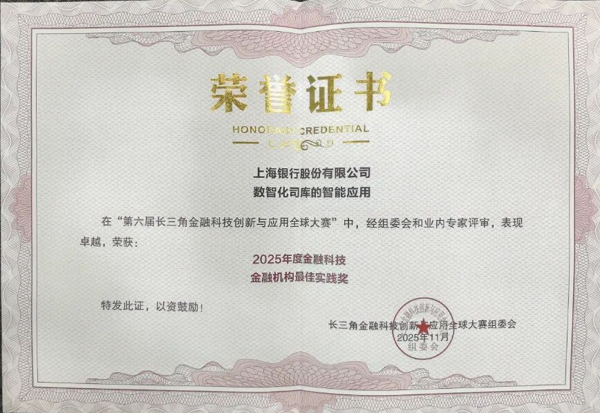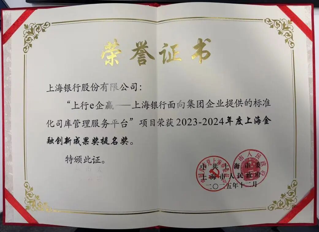 2023-2024年度上海金融创新成果奖提名奖、金融机构最佳实践奖——近日,凭借卓越的金融科技实力与深厚的本土服务经验,上海银行司库建设荣获两项金融创新大奖。