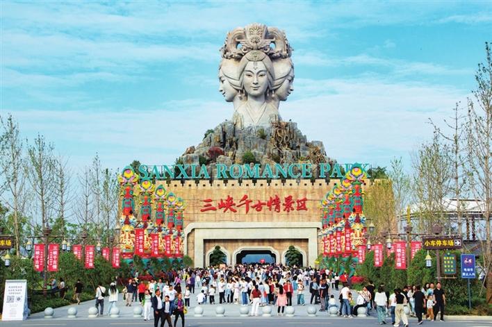 与酒店一墙之隔的,是2024年7月投入运营的“爆款”景区——三峡千古情。这一集文化、娱乐与休闲于一体的综合型旅游景区,开业不久便受到周边游客青睐,不仅创下开业百天营收破亿元的佳绩,其主秀《三峡千古情》更在2025年“五一”假期创下单日连演10场的记录。