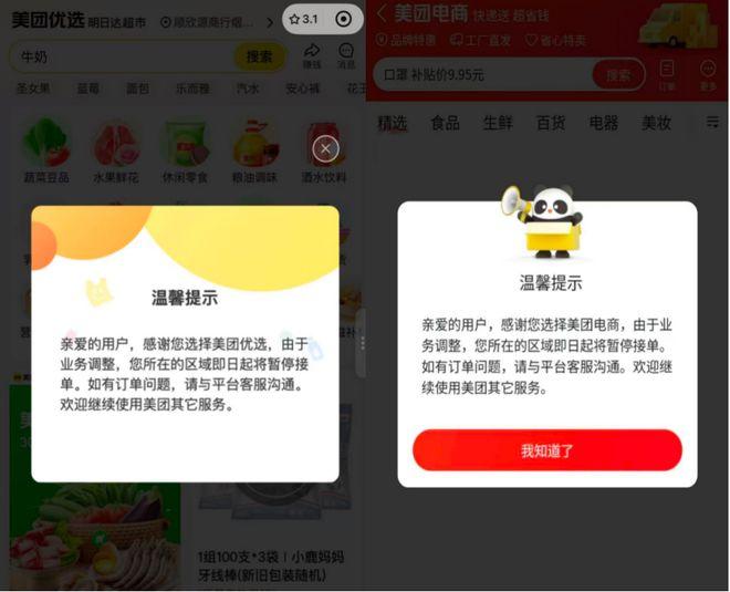 当时美团称只是进行了局部地区调整,将推动优选战略转型升级,继续探索社区零售零售业态。