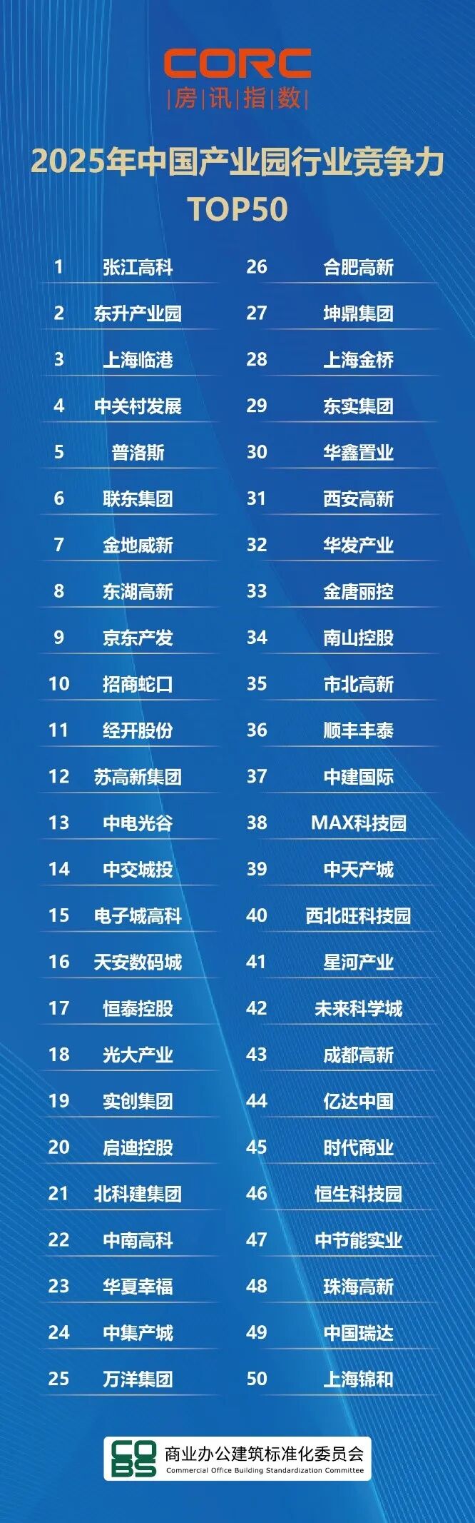 尤为值得关注的是,“2025中国写字楼产业园行业竞争力100强”榜单首次将行业竞争力系列(TOP100榜单)和年度影响力系列(中国商业地产金厦奖)分开排序,进一步提升了排名的严谨性与专业性。