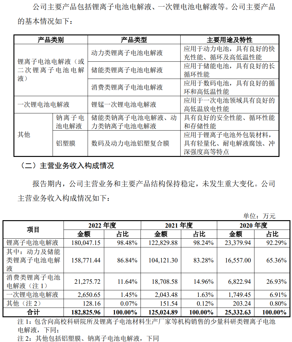 据招股书披露,2022年公司电解液出货量国内排名第八;2023年上半年,公司电解液出货量国内排名第五。公司曾获得珠海市独角兽种子企业、广东省锂电池电解液及添加剂工程技术研究中心、广东省省级企业技术中心等称号。