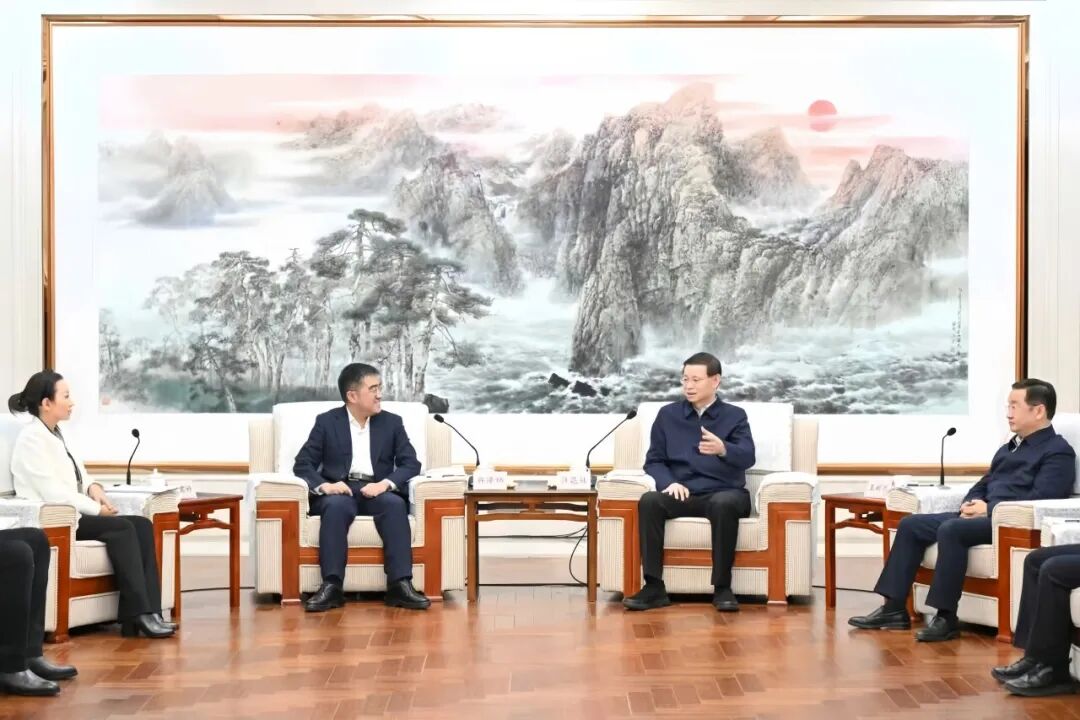 蒋承志在会见中发言表示,远东控股集团创立于1985年,历经40年发展,已连续19年跻身中国企业500强,年营收超700亿元,员工近万人。集团旗下远东股份布局智能缆网、智能电池、智慧机场三大核心业务,拥有多项单项冠军产品,多家子公司获评专精特新“小巨人”及高新技术企业,助力了合肥紧凑型聚变能实验装置等重点项目,与超百家世界500强、三百余家中国500强企业建立合作。集团当前锚定“ALL IN AI——电能+算力+AI”核心战略,与全球顶尖芯片厂商、头部云服务商、主流车企建立深度合作关系。