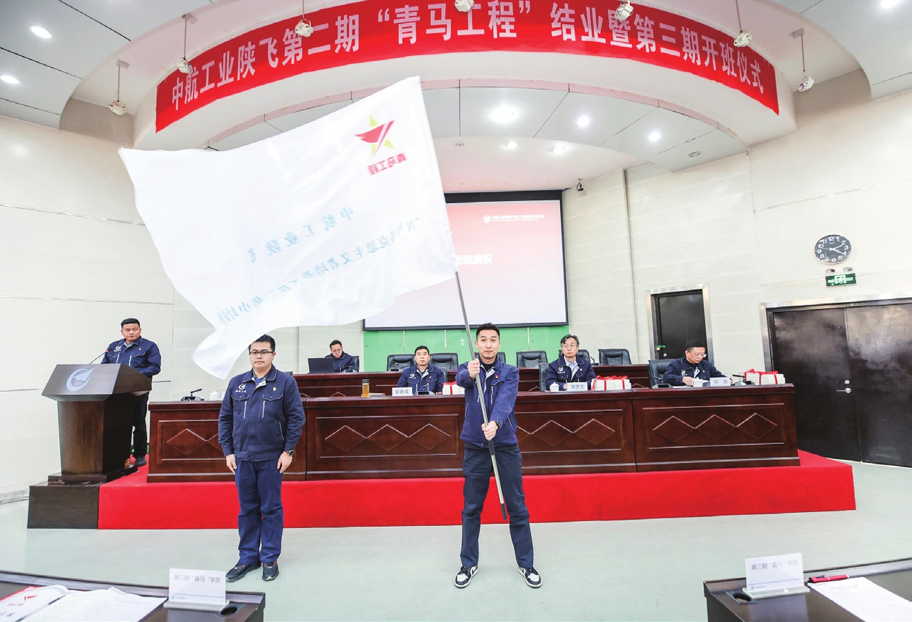 搭建全方位培养平台,班子成员赴华为、阿里巴巴等企业调研学习,开展8期定制化培训、5期数字化转型“松土培训”,“师课一体”建设储备300余人内训师队伍,高级职称人员占比达31.5%,技师及以上人员占比达21%,打通“能力提升—资格认证—岗位适配”全链路。同时,深化“陕飞是我家,爱她建设她”文化理念,构建“精神内核挖掘—多元文化载体—全员参与传播”的三位一体文化体系,打造故事集编制、视频片制作、汇报演出等“10个1”文化产品矩阵,央视专题报道、“开讲啦”栏目亮相等提升品牌影响力,“蓝天关爱计划”、职工诉求直通车等暖心举措,让干部职工心无旁骛投身航空事业。