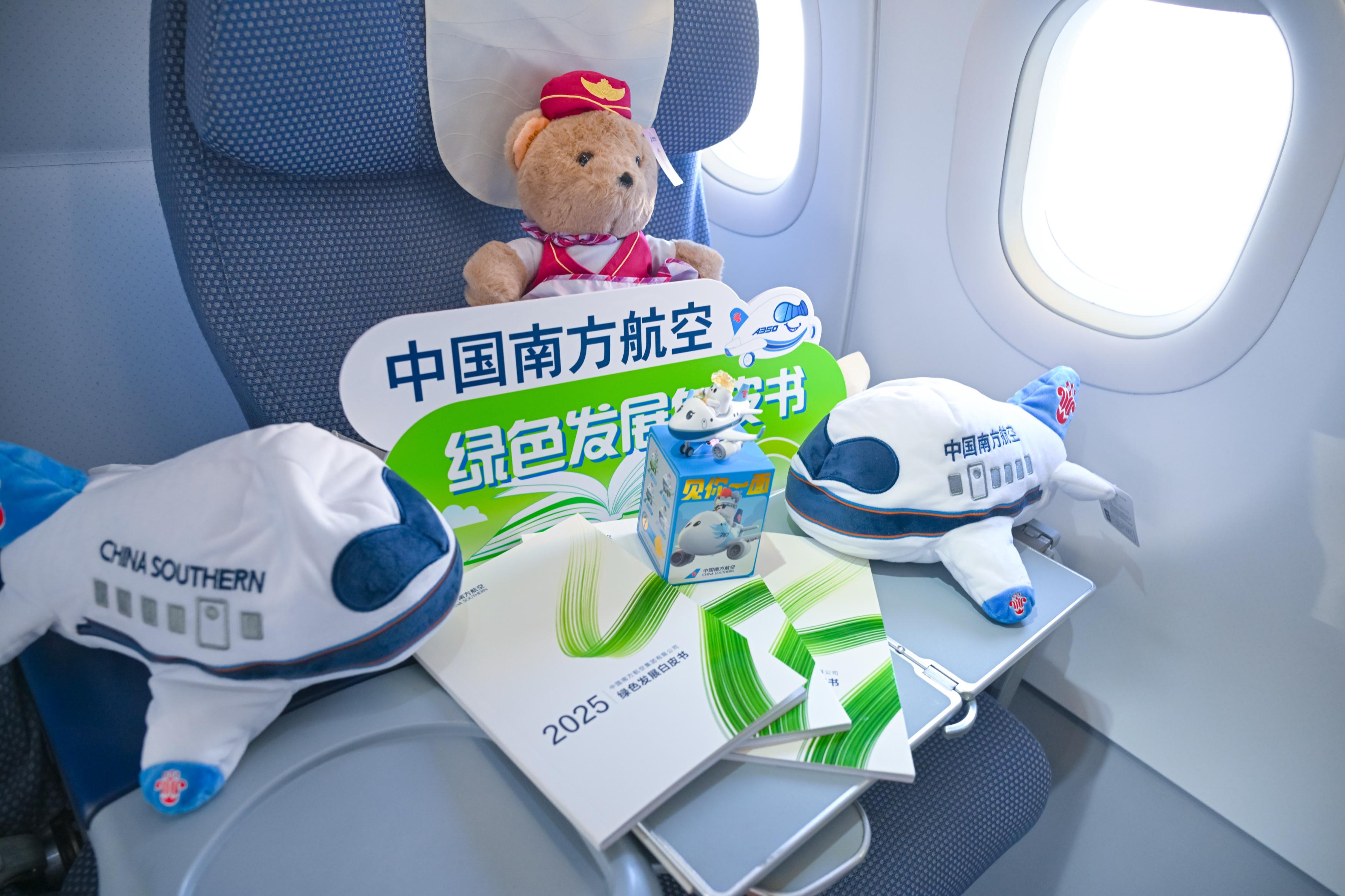 近日,中国南方航空集团有限公司(以下简称“南航”)正式发布《2025年绿色发展白皮书》。为生动传递绿色发展理念,南航举办白皮书主题航班活动,将绿色发展实践转化为公众可感、可触的绿色体验载体,让旅客在万米高空沉浸式体验南航的绿色实践,共同开启一段充满环保意义的云端之旅。