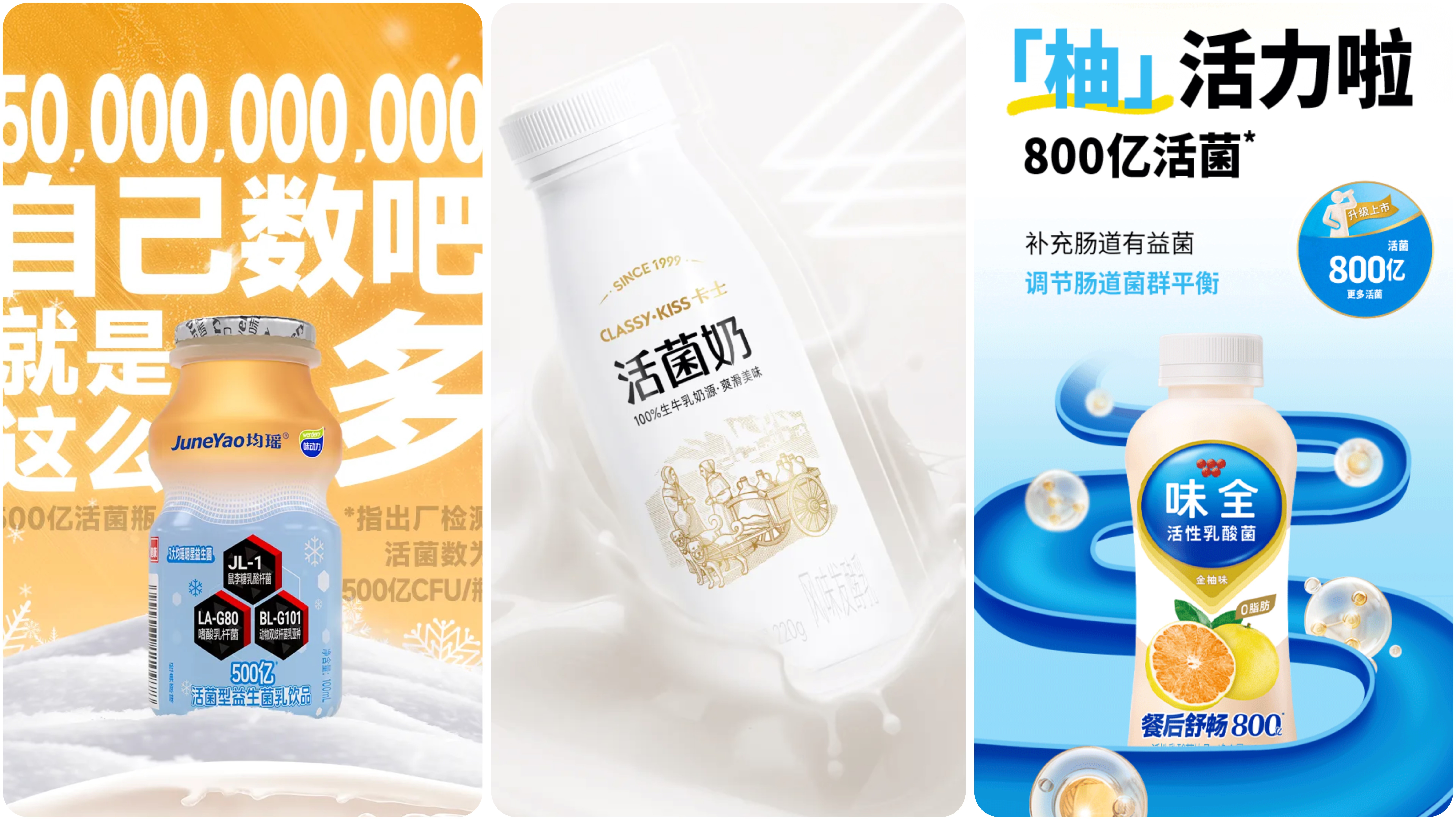 此外,肠道健康也是功能性乳品的主攻方向之一。从品类关联来看,酸奶与乳酸菌饮料是肠胃健康的高关联品类,这源于其益生菌与发酵属性,与肠道健康需求高度契合。例如,味动力(均瑶)活菌型原味乳酸菌饮料使用了多菌复配(JL-1鼠李糖乳酪杆菌、BL-G101动物双歧杆菌乳亚种、LA-G80嗜酸乳杆菌);味全金柚活性乳酸菌饮品添加了德国进口副干酪乳酪杆菌LPC100;卡士活菌奶搭配唾液链球菌、副干酪乳酪杆菌及嗜酸乳杆菌等5种活性益生菌。