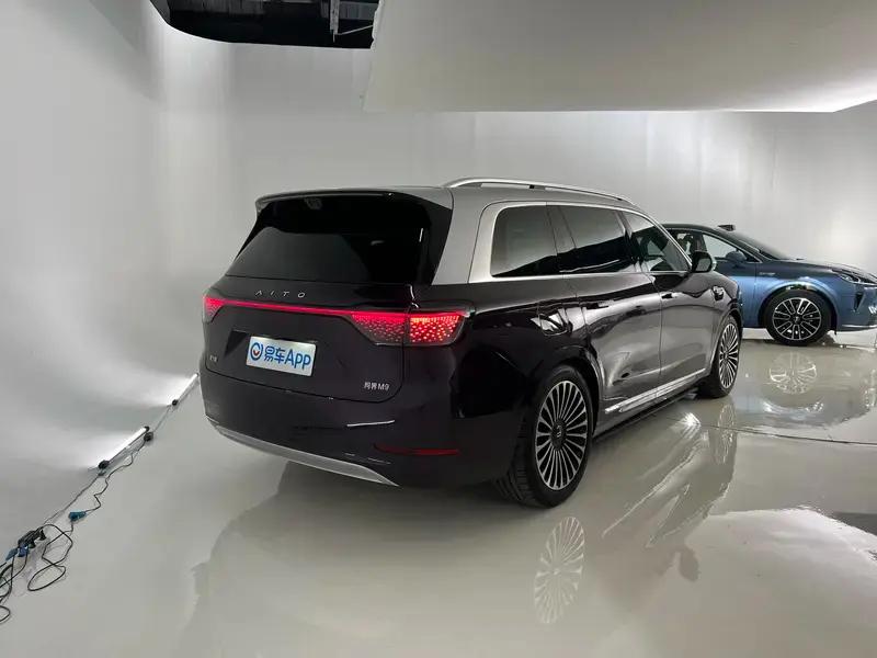 动力方面,问界M9增程版采用了1.5T发动机,最大功率为112千瓦,搭配双电机,最大功率分别为165kW和200kW。系统总功率为365kW,总扭矩为675N·m。纯电版车型的前电机最大功率为160kW、后电机最大功率230kW,总功率为390kW,总扭矩673N·m,搭载宁德时代100kWh的三元锂电池,拥有800V高压碳化硅平台,可实现充电5分钟续航150km。