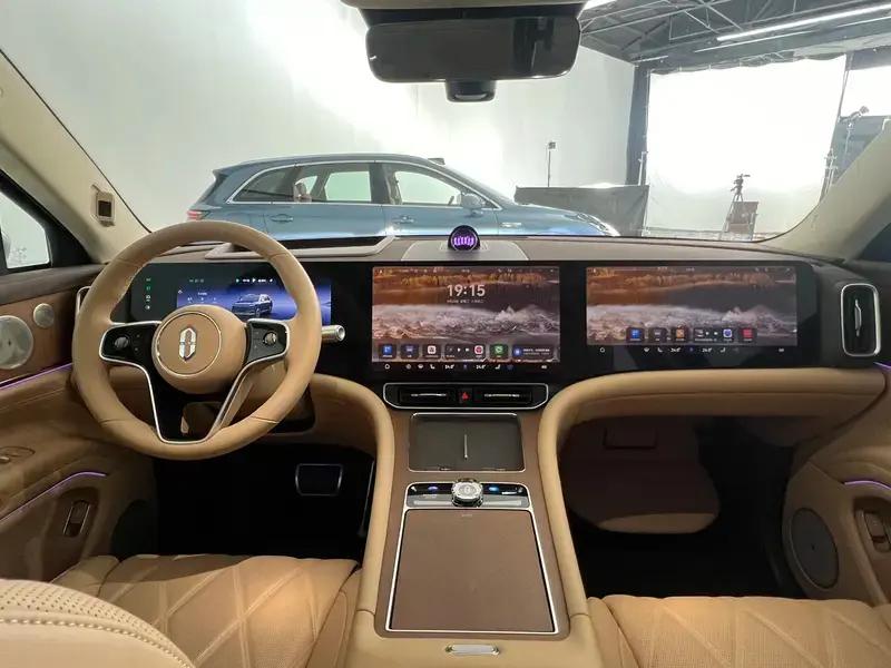 外观方面,新车整体延续了现款车型设计,前脸搭载了华为双百万像素智慧投影大灯和智能交互矩阵大灯,辨识度极强。此外,新车搭载了4颗激光雷达。同时,新车新增了银境紫车漆颜色。