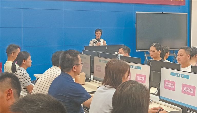 2025年7月,一场为期两天的“AI赋能教师能力提升”专项培训吸引了百名教师。广东技术师范大学周元春副教授带来的“数智技术在教学中的应用”工作坊,让教师们亲身体验了生成式AI的魅力。而这只是起点。随后,计算机网络科组长薛炎发主持了“网络专业AI应用典型案例转化”校本培训,他将AI在微课制作、智能体开发、参赛转化中的实战经验倾囊相授,并鼓励同事:“很多时候,不是你不能,而是你不相信你能!”