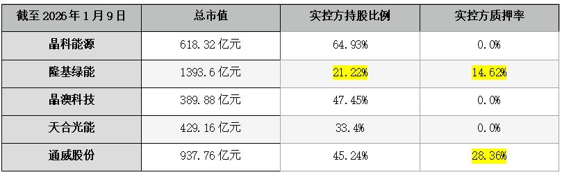 隆基绿能、通威股份实控方存在质押
