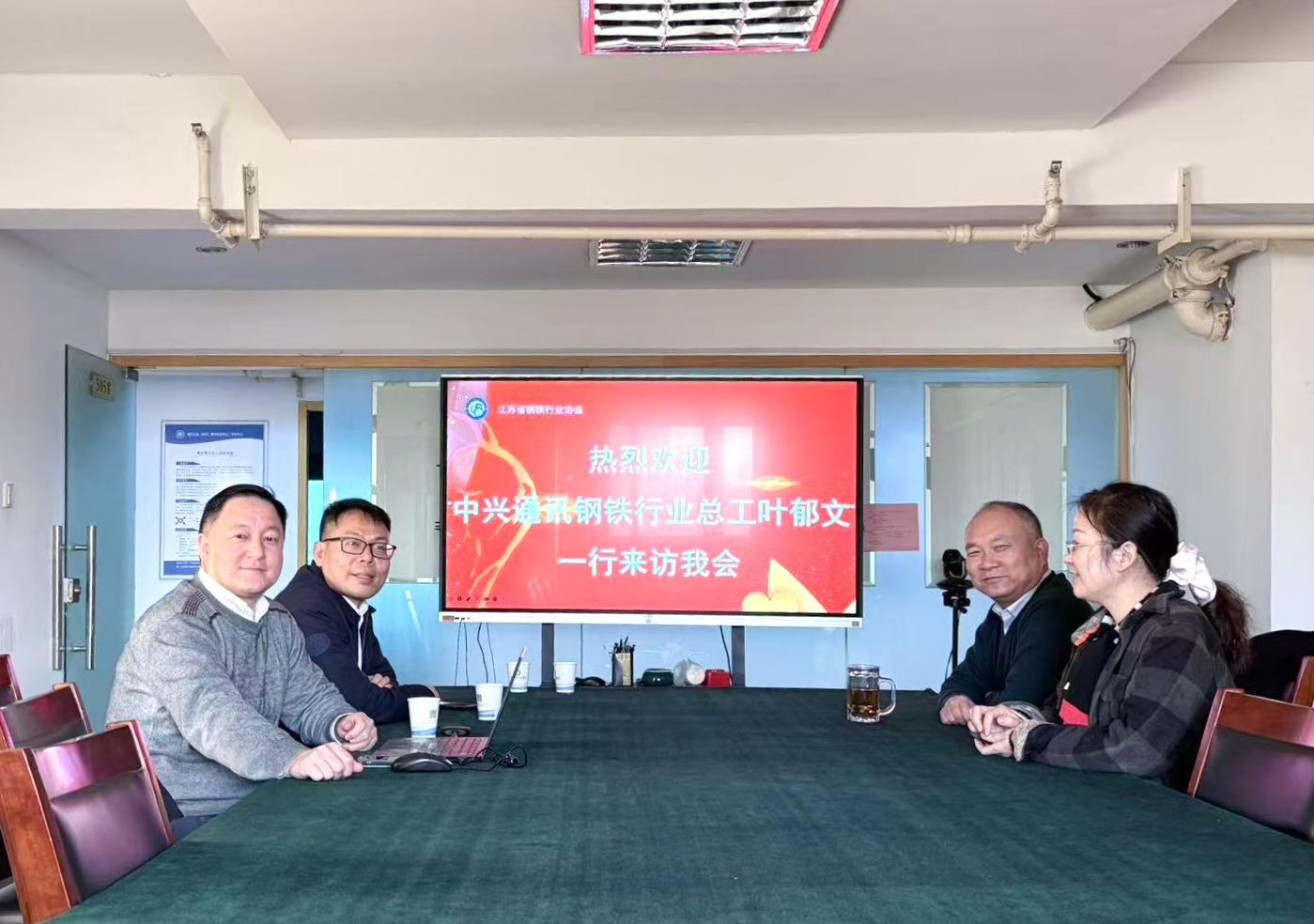 1月11日,中兴通讯5G行业总监张维庆、钢铁行业总工叶郁文一行来访我会,会晤省钢协会长陈洪冰、秘书长蒋莉,双方就钢铁行业“十五五”人工智能+钢铁数字化转型规划、智能制造升级及人工智能应用案例等议题展开了深入交流。