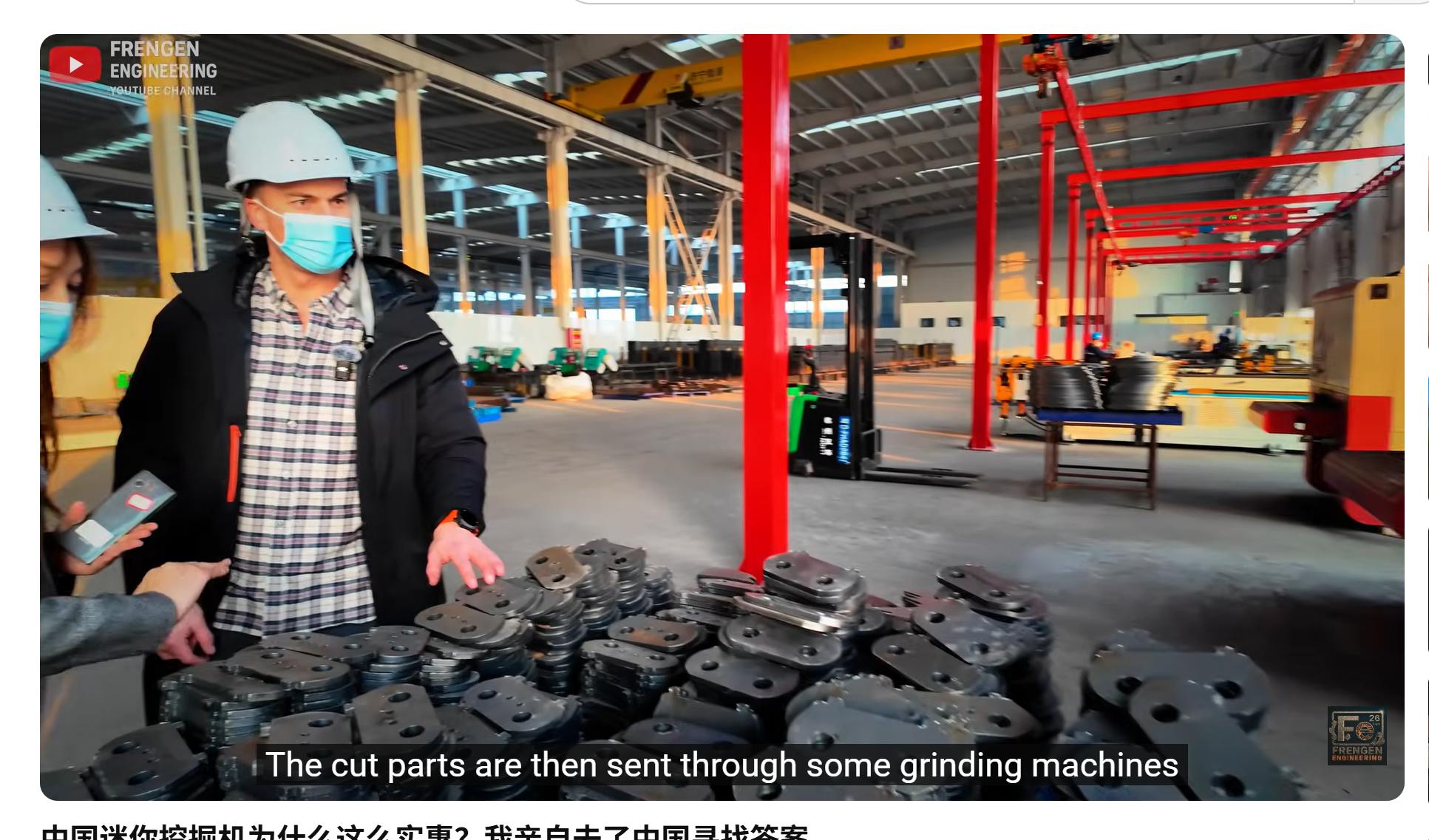 紧接着,Frengen飞了一趟山东济宁,探访了这家挖掘机工厂山东华翊。他坦诚,这次是受工厂的邀请前往参观,行程费用是由对方承担的。他戴着安全头盔和工厂的工人交流,还很有兴致地和工程师讨论研究是否有可能把空调内置到挖掘机内部。