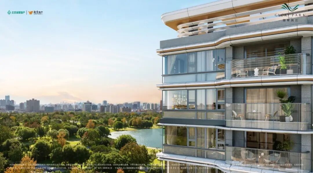 尤为值得一提的是,为最大化景观视野,实现杨浦公园全景舱级俯瞰视野与无价景观的空间平权,翎翠滨江采用大面积玻璃幕墙,将窗墙比推至极限,令建筑与自然无界对话。