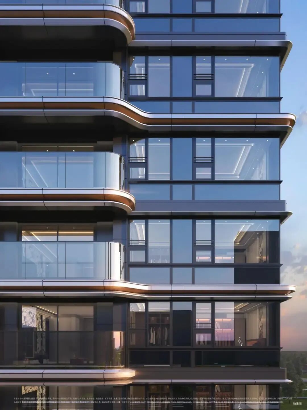 立面设计上,项目摒弃了传统直线造型,汲取游艇设计灵感,以曲线线条打造超流体天际线,赋予了建筑流动的先锋艺术感。