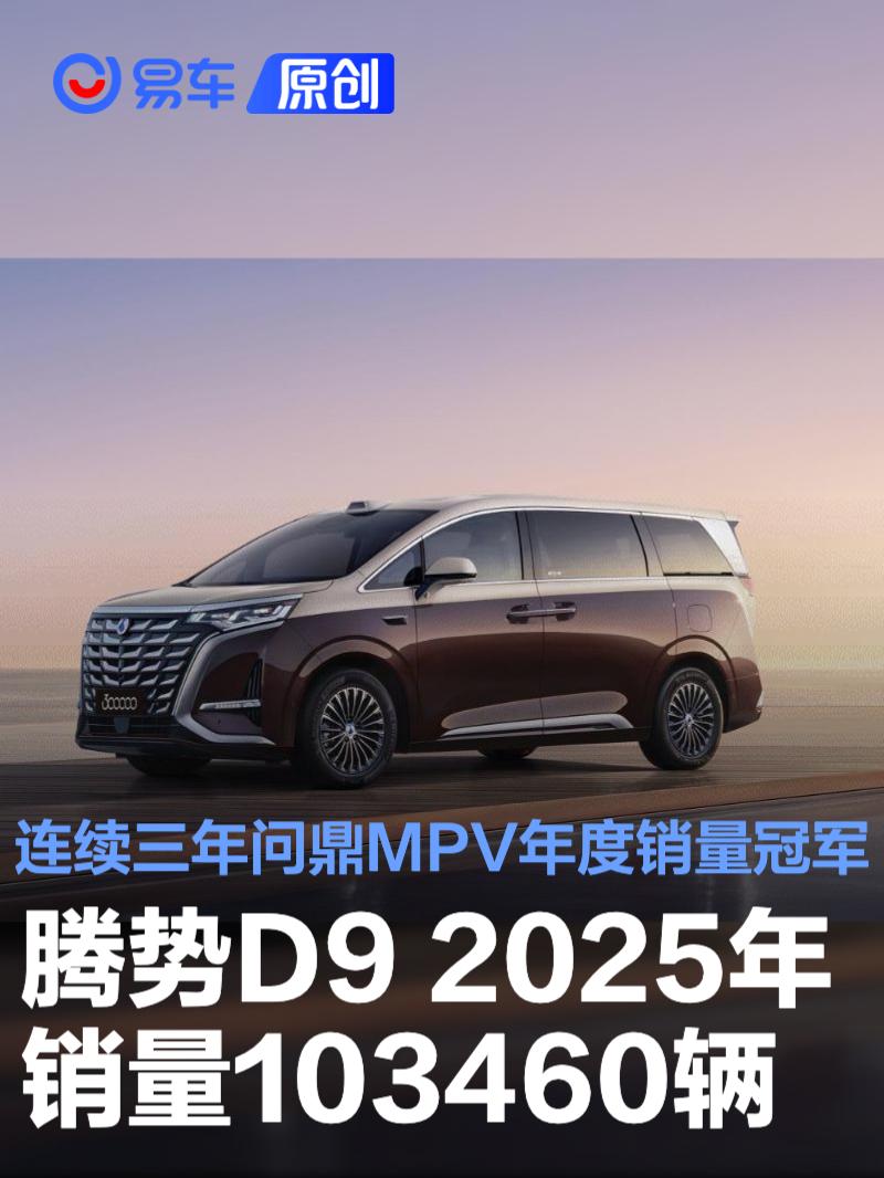 腾势D9 2025年销量103460辆 连续三年问鼎MPV年度销量冠军