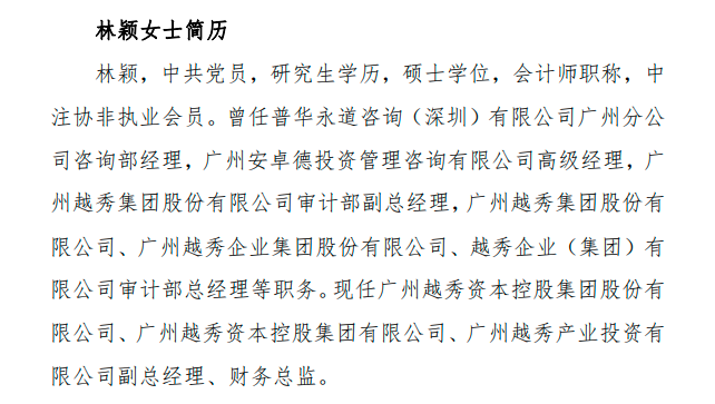 新任CFO林颖,会计师职称,中注协非执业会员。