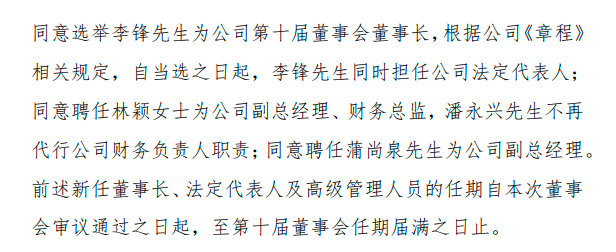 此次人事调整还涉及其他高管任命。公司聘任林颖为副总经理兼财务总监,聘任蒲尚泉为副总经理,进一步充实了管理层团队。