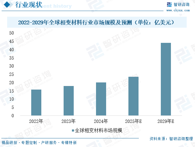 相变材料基于其在物态转变过程中吸收或释放大量潜热的特性,可实现能量的高效储存与可控释放。该技术依托材料在固-液等相态间的可逆转换,能够在特定温度区间内实现多次储能-释能循环,兼具高能量密度和稳定输出性能。近年来,随着全球建筑能耗已占终端总能耗的约36%,相变材料在建筑空调系统中可实现能耗降低20%–30%,显示出显著的节能潜力。与此同时,冷链物流、5G电子散热等应用场景需求年增速超过20%,新能源汽车电池热管理与数据中心液冷等新兴领域进一步拓展了行业增长空间。2024年,全球相变材料市场规模已达20亿美元,预计到2029年将增长至44亿美元,期间年复合增长率高达约17%。亚太地区尤其以中国和印度为代表,在城镇化与产业升级推动下,正成为全球市场增长的核心动力,整个行业也持续向高性能材料、场景定制化与产业链整合方向加速演进。
