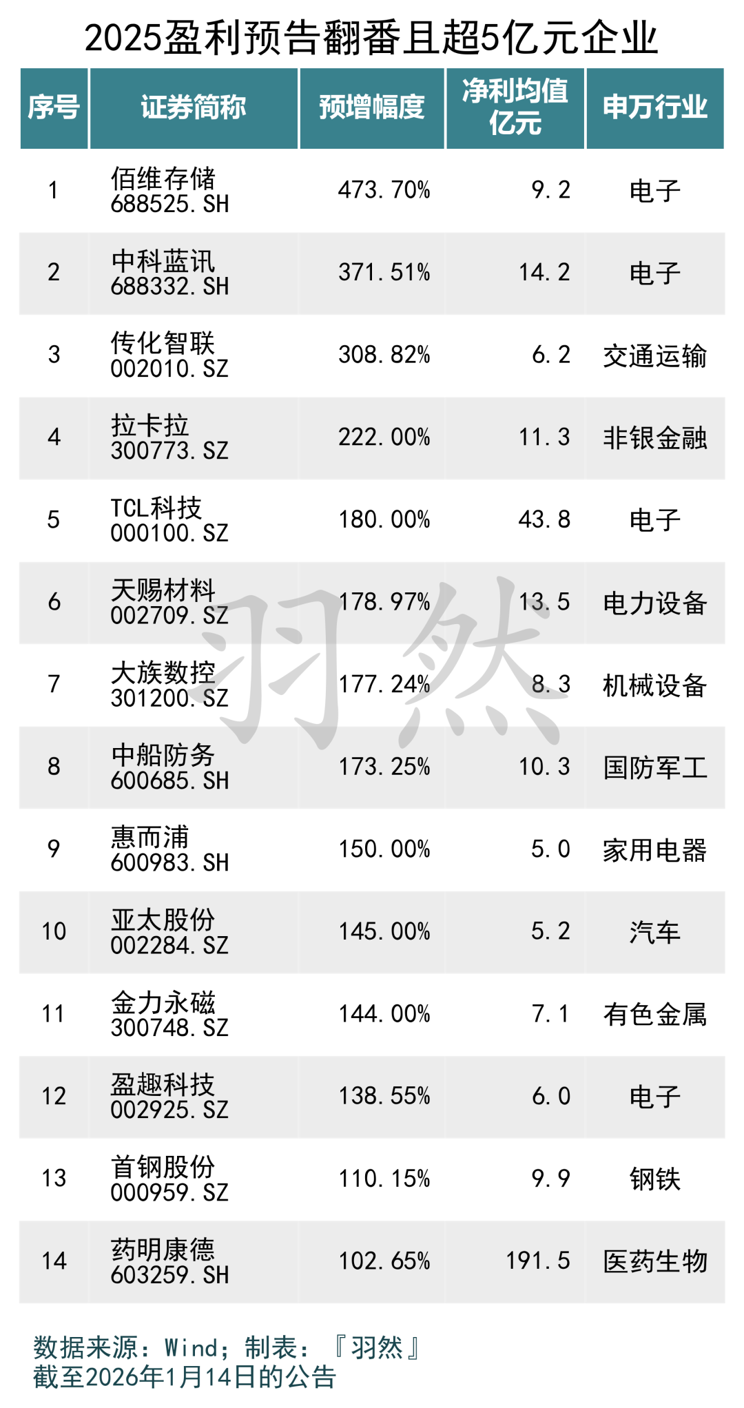 2025业绩预告冰火两重天:31家盈利翻倍,71家深陷亏损!