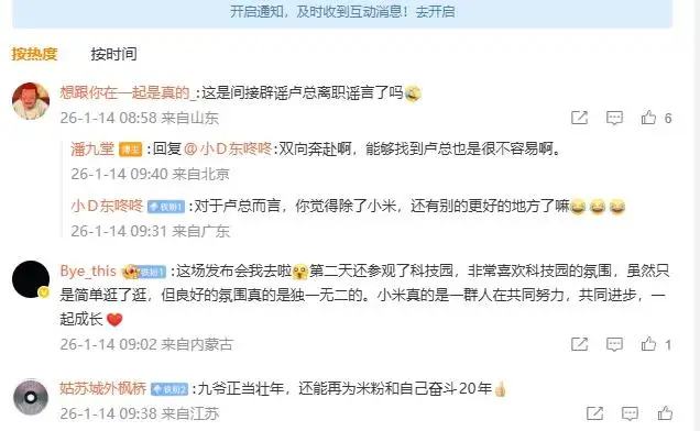 随后,各种解读就开始了,称卢伟冰和雷军又不同意见,如果雷军再出山淄博,卢伟冰就威胁要辞职……