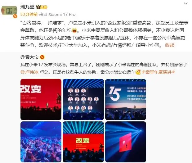 小米陷自证陷阱?潘九堂疑回应卢伟冰离职与高层内斗:不存在……