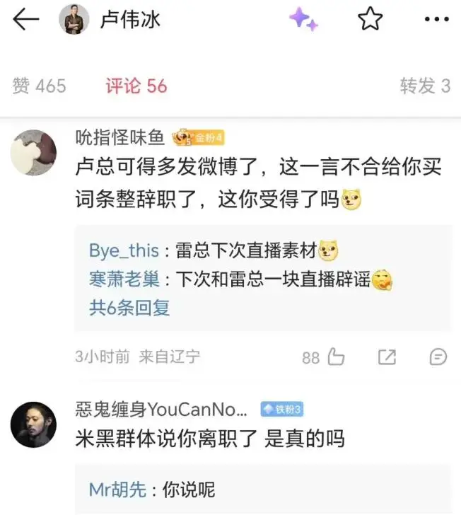 话虽如此,卢伟冰的评论区依然沦陷,不少人在评论区留言询问,离职是否是真的。