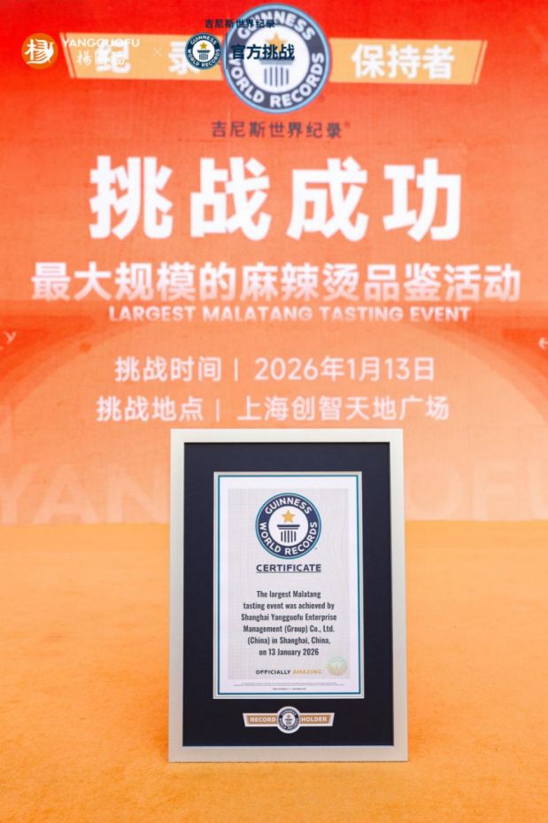 在完成全部规定品鉴流程后,经吉尼斯世界纪录认证官严谨核验与最终确认,杨国福“最大规模麻辣烫品鉴活动”吉尼斯世界纪录挑战正式生效。