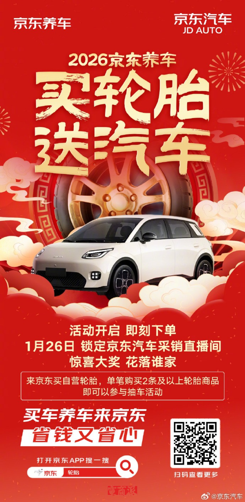 新年换胎好运到!京东养车“买轮胎送汽车”抽奖活动重磅开启