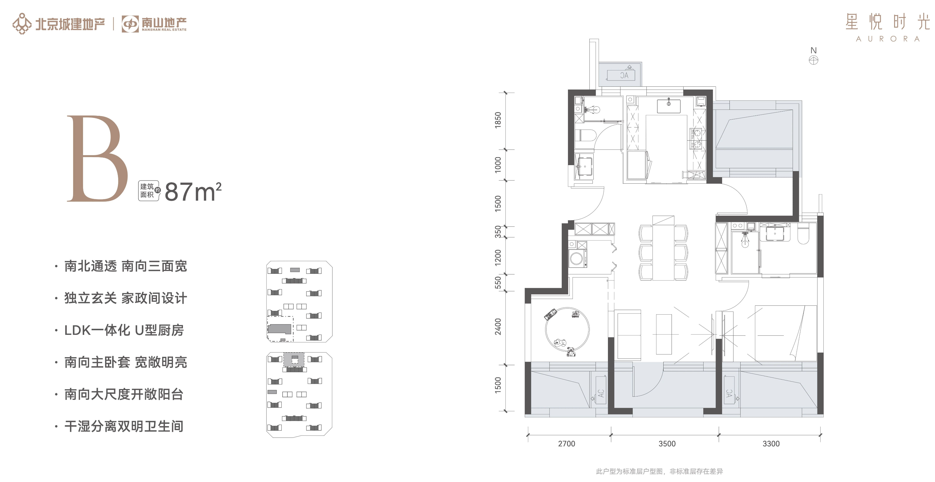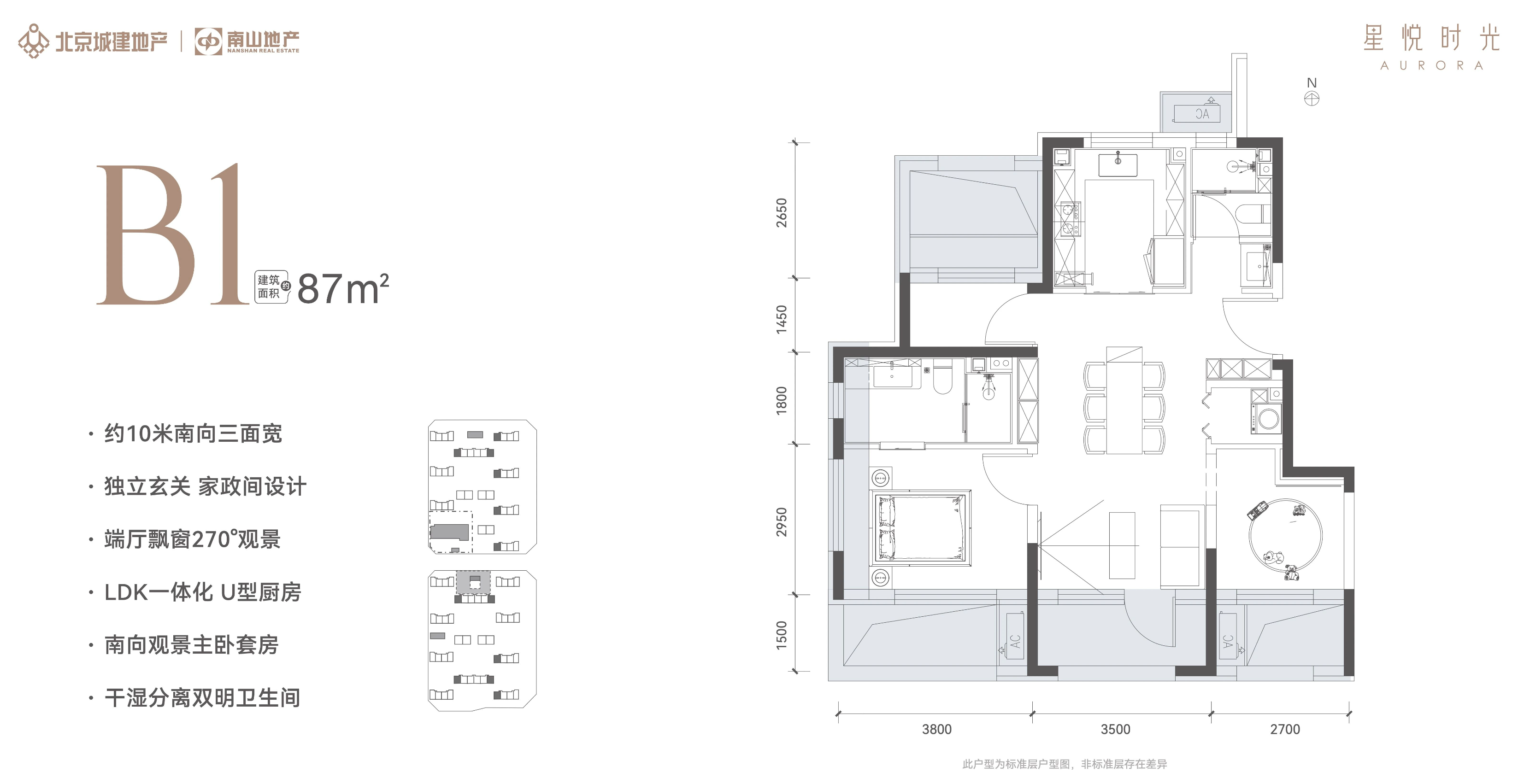 产品定位上,星悦时光以改善高品质打造刚需户型,主力面积段约77㎡、87㎡、107㎡三居四居,其中,77㎡户型占比28%;87㎡主力户型占比60.3%;107㎡户型占比10.4%;另有少量72㎡户型。