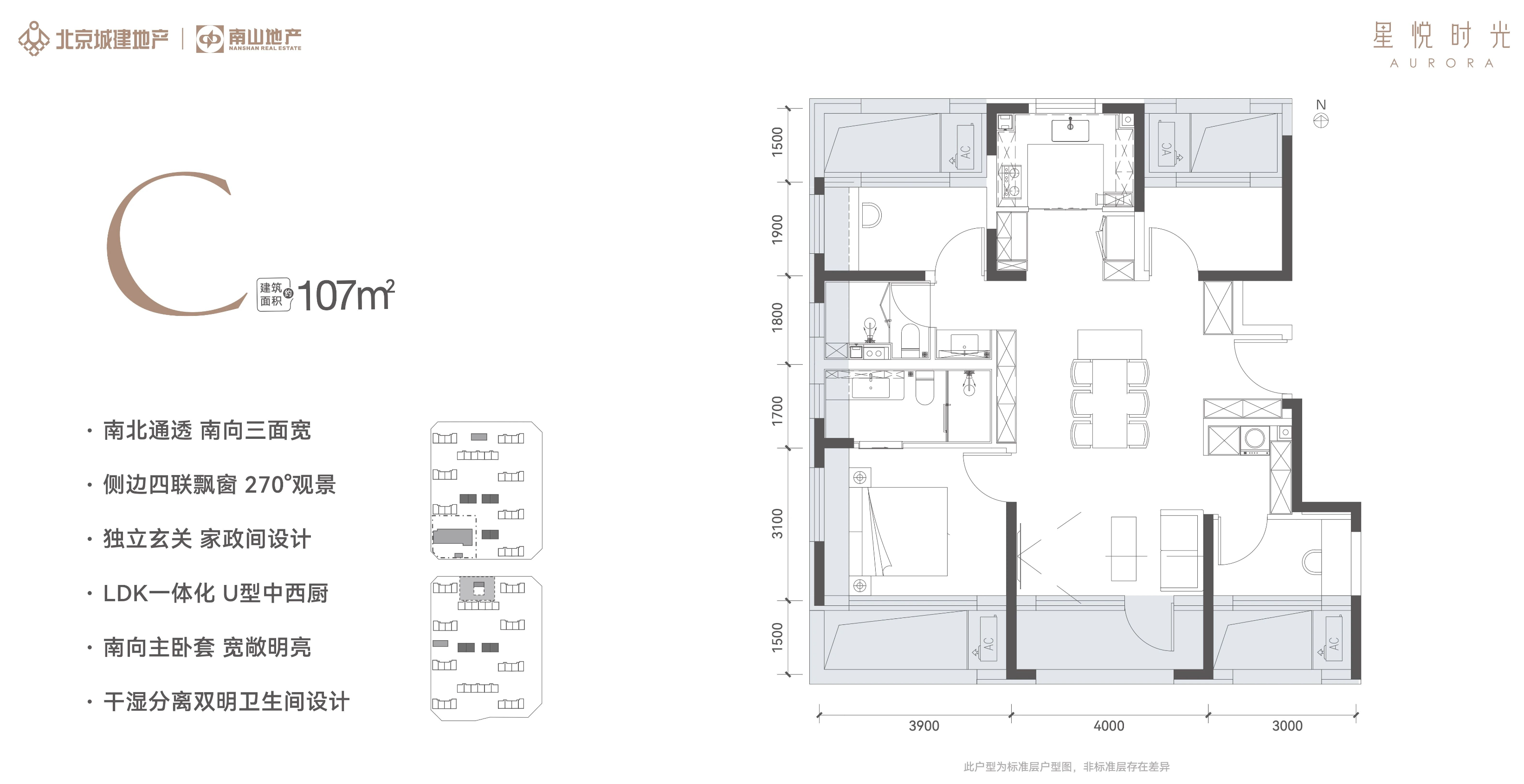 该项目一次性赠送了“飘窗设备平台挑空阳台”,几乎使得每个户型的可使用率都达到了100%以上。