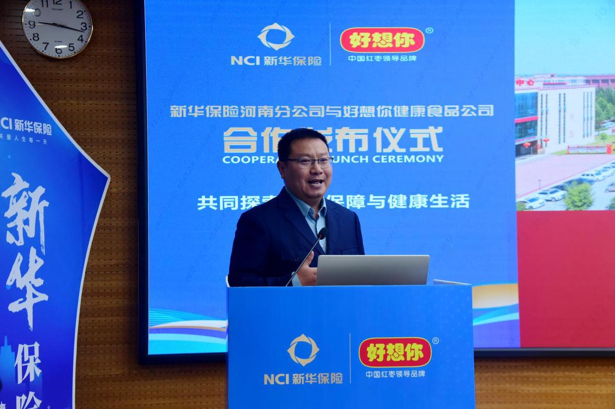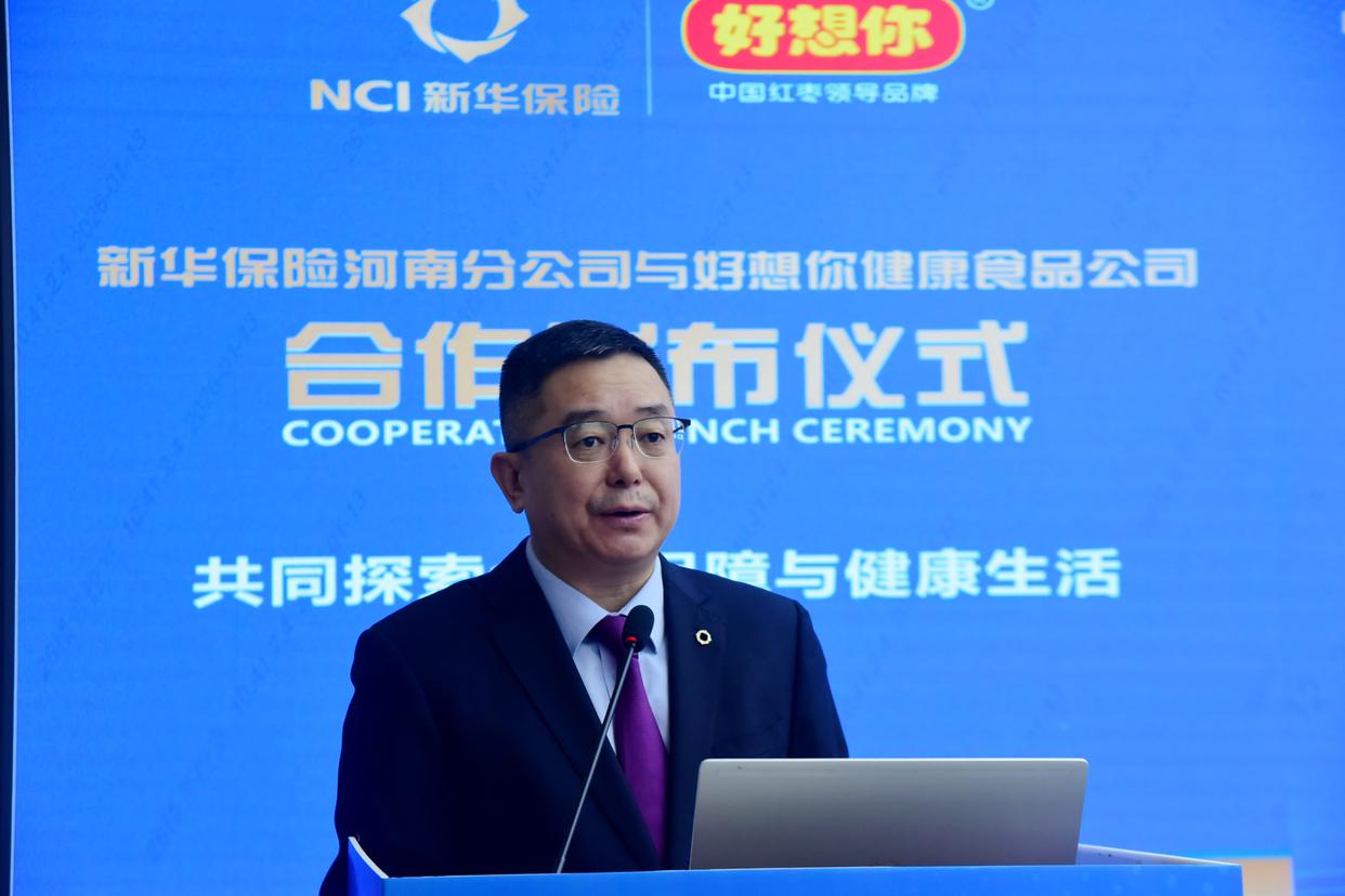 好想你健康食品股份有限公司副总经理石聚领在致辞中,对新华保险的实力与口碑给予了充分肯定。他表示,此次合作是基于共同价值观的必然选择,是优势互补、资源共享的共赢之举。好想你将以其在健康食品领域的专业与积累,与新华保险一道,为消费者带来更具温度、更全方位的健康生活解决方案,共同助力“健康河南”建设。