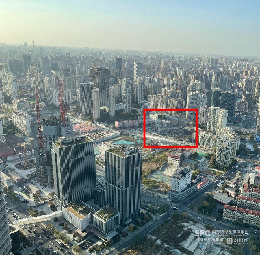 (图中红框内为绿城位于虹口区北外滩的在建项目,不远处是正在施工的浦西第一高楼——北外滩中心。唐韶葵/摄)