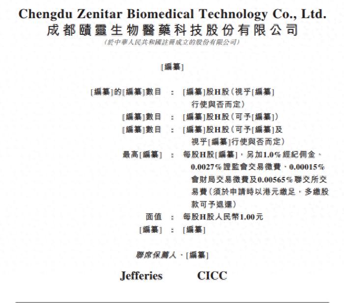 瑞财经王敏 1月13日,成都赜灵生物医药科技股份有限公司(以下简称:赜灵生物)向港交所主板递交上市申请,Jefferies、CICC为其联席保荐人。