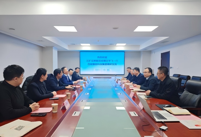 蒋斌对王学飞一行的到访表示热烈欢迎,并介绍了集团自完成战略性重组以来,在资源能源勘查开发、实施“走出去”战略以及培育战略性新兴产业等方面取得的重要进展。他表示,豫地科技集团与五矿证券在服务国家重大战略、保障能源资源安全方面使命相通,业务协同潜力巨大,合作空间广阔。双方应以此为契机,建立常态化沟通对接机制,携手开创产融深度融合、互利共赢的新局面,共同为保障国家资源能源安全贡献更大力量。